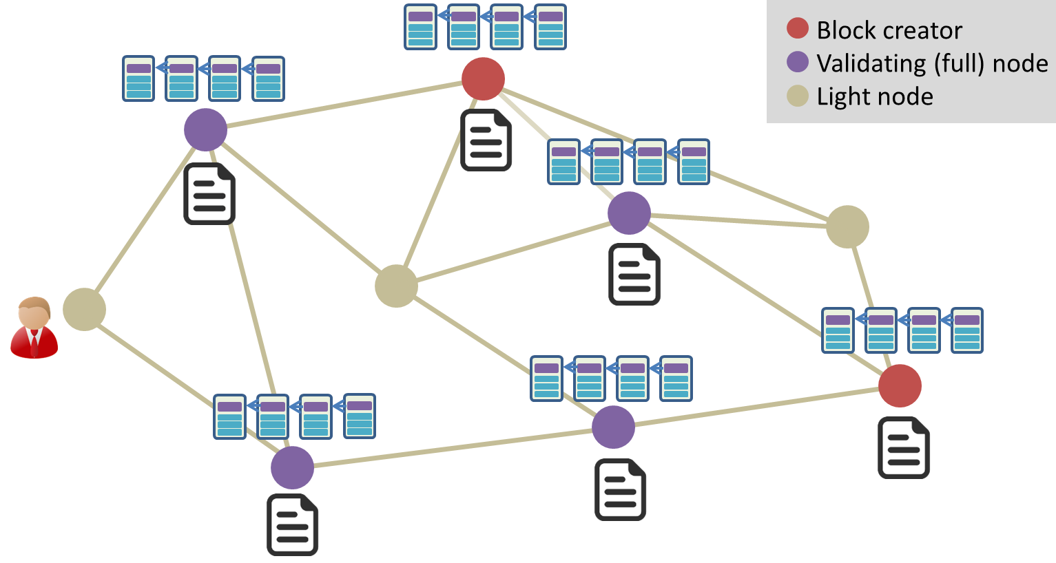 | Minder participanten hebben toegang tot data / smart contracts (vb. d.m.v. channels in Hyperledger Fabric of streams in Multichain) | Lagere graad van distributie van vertrouwen. Hogere operationele complexiteit |
