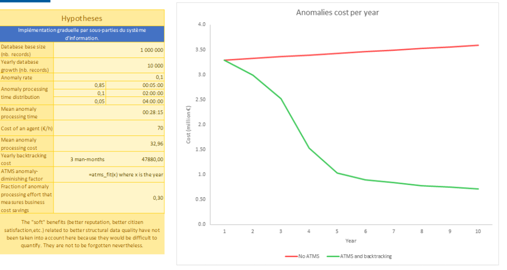 De hierboven genoemde backtrackingoperatie is gebaseerd op statistische monitoring van anomalieën en transacties met behulp van een ATMS (Anomalies and Transactions Management System). Het ATMS wordt opgezet na specificatie van de strategische kwaliteitsindicatoren naargelang het toepassingsgebied. De operatie maakt het vervolgens mogelijk om binnen de gegevensprocessen en -stromen, in samenwerking met de informatieleverancier en de databasebeheerder, de structurele oorzaken te identificeren van de productie van een groot aantal systematische anomalieën en/of anomalieën die als strategisch worden beschouwd: onjuiste verwerking van bepaalde gegevensbronnen, ontstaan van nieuwe situaties, ontoereikende interpretatie van wetgeving, programmeerfouten, enz. Op basis hiervan kan een diagnose worden gesteld en kunnen duurzame en structurele corrigerende maatregelen worden genomen (correctie van formele code in programma’s, herstructurering van processen, aanpassing van de interpretatie van een wet, verduidelijking van documentatie, enz.)