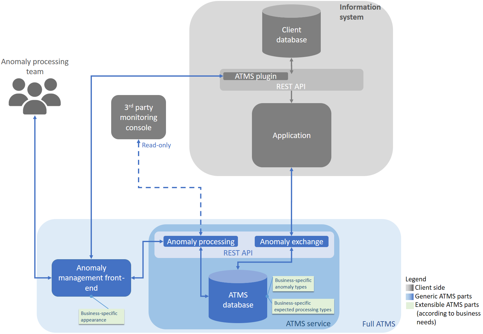 Deze keuzes bieden een aanzienlijk voordeel voor het wijdverspreide gebruik van ATMS: het kan worden geïntegreerd in een informatiesysteem zonder enige wijziging aan de clientdatabase, met uitzondering van de toevoeging van één enkele technische tabel. Die heeft als enig doel om de toepassing in staat te stellen om eenvoudig de historiek van een record in de clientdatabase op te vragen met behulp van zijn bedrijfsidentificatie of anomalie-identificatie.