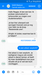 Vandaag heeft de RSZ al een aanwezigheid op Facebook in het kader van studentenarbeid (Student at work): er is een Facebook pagina waar interessante berichten worden gepost over studentenarbeid en waar je een chatbericht kan sturen. Die berichten worden manueel afgehandeld door medewerkers van de RSZ. Hoewel men de vragen die via dit kanaal worden gestuurd goed tracht op te volgen, kan er toch wat tijd over gaan eer er een antwoord teruggestuurd wordt. We vonden het interessant om na te gaan of er automatisch kan geantwoord worden op vragen over studentenarbeid. De belangrijkste meerwaarde die hiermee beoogd wordt is dat een student onmiddellijk een antwoord krijgt op zijn of haar vraag en dit 24 op 7.