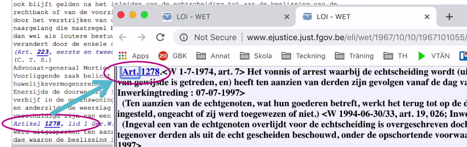 Met de entiteiten die wél goed gedetecteerd worden, kunnen we alvast aan de slag. Een link naar een andere toepassing met nuttige info over die wettekst is snel gelegd: bijvoorbeeld naar de integrale gepubliceerde wetteksten, die in Europa sinds kort online beschikbaar worden gesteld via een gestandaardiseerd systeem, de European Legislation Identifier (ELI).