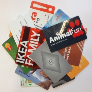 Je kent het vast wel: je stapt een winkel binnen die je nog niet eerder bezocht, en wanneer je buiten komt, heb je er weer een klantenkaart bij, mooi in de standaard vorm van de vele andere kaarten die je net niet allemaal in je portefeuille krijgt. Binnenkort krijgen er we dan ook nog het nieuwe Europese rijbewijs in bankkaartvorm bij, en voor wie met de trein reist, werd kortgeleden de mobib-kaart ingevoerd, die vroeger enkel voor de metro was bedoeld. We hebben tegenwoordig dus kaarten om te betalen, om korting te krijgen, voor transport, voor identificatie, om deuren te openen, enz. enz. Kortom: er zit meer plastic in onze portefeuille dan geld.