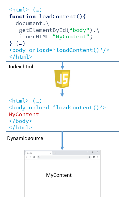 Dans le premier cas, le code source (HTML) envoyé par le serveur web contient toutes les informations que l’on veut extraire. Le site en question peut utiliser du Javascript, typiquement pour améliorer l’expérience utilisateur, mais son exécution n’est pas nécessaire pour obtenir le contenu. Le code HTML peut également appeler à l’inclusion d’images ou de feuilles de style CSS, mais à nouveau, celles-ci n’ont qu’un but esthétique, et n’ont donc pas besoin d’être chargées pour extraire le contenu désiré.