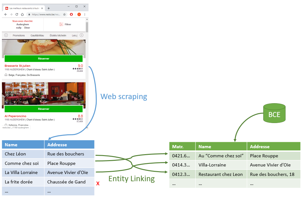 La première opération est le web scraping. La seconde, qui lui donne tout son sens, est communément appelée “l’entity linking“, ou le “record linkage“.