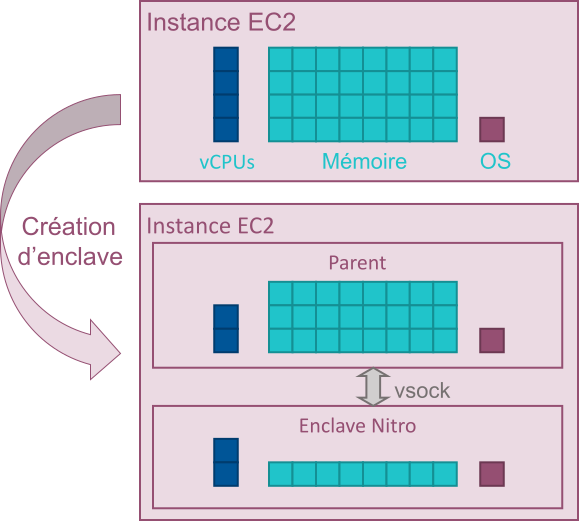 Les enclaves Nitro, quant à elles, sont des machines virtuelles isolées fonctionnant avec une instance EC2 classique, appelée instance « parent » (Figure 3).