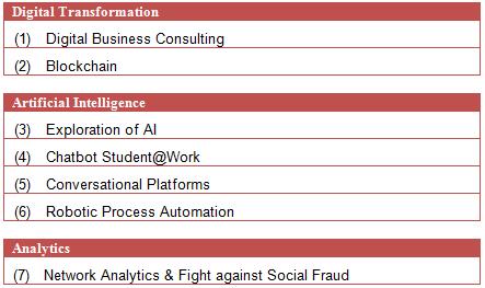 In de studie “Digital Business consulting” van vorig jaar hebben wij een methodologie en toolset uitgewerkt die gebruikt kan worden om binnen het kader van de digitale transformatie opportuniteiten bij de leden van Smals te detecteren. Het is de bedoeling om in 2018 de aanpak en toolkit verder uit te breiden en concreet in te zetten, om samen met onze klanten te peilen naar mogelijkheden voor digitale transformatie.